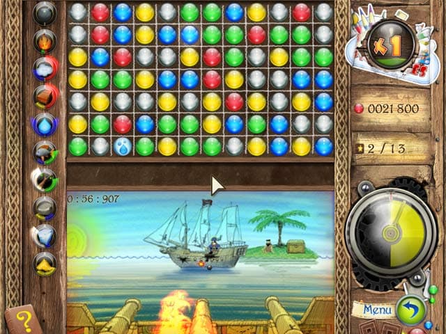 Sprinkled throughout the 100 match-three levels are 24 adventure levels in which the player matches orbs to create items he or she can then use on an animated scene. For example, the player might have to match three red orbs to create a bomb and then click on the bomb to fire it at an attacking pirate ship! Bonus achievements, such as dropping wood in a fireplace, add to the fun. Download Art Stories and enjoy hours of captivating match-three thrills!