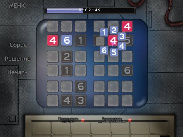 Помогите Эми решить множество логических задачек и вырваться из инопланетного плена. Игровое поле состоит из квадрата 9x9 клеток, разделенного на меньшие квадраты 3x3 клетки. У головоломок судоку всего одно правило: вам необходимо заполнить клетки цифрами от 1 до 9 таким образом, чтобы в каждой строке, в каждом столбце и каждом малом квадрате 3x3 каждая цифра встречалось бы только один раз.