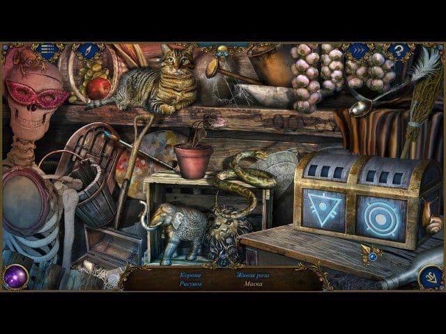 Отправляйтесь в поместье Франкенштейнов, чтобы спасти друзей – Элизабет и Виктора, а затем и весь мир от ужасных созданий профессора. Прежде всего вам нужно найти способ попасть во внутренний двор особняка. Как это сделать? Похоже, в углубление на замке войдет сапфир, который есть в инвентаре. Отлично! Ищите предметы по списку, чтобы место для инвентаря никогда не пустовало. Если предмет выделен синим цветом, то вам понадобятся дополнительные действия. Так, чтобы найти бокал с вином, наполните пустой сосуд. Сдутый мячик стоит надуть, а птицу собрать из пазлов.