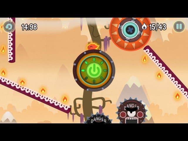 Перескакивайте с одного крутящегося колеса на другое, обходите стороной угрожающие шипы и остерегайтесь подвешенных бомбочек. Они в любой момент могут взорваться, и вам придется начинать уровень заново. А чтобы прыткий огонек не умер с голоду, подкармливайте его всевозможными вкусняшками.