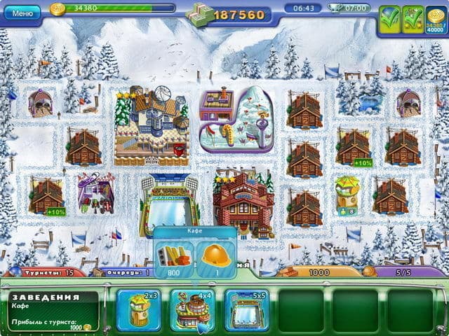 Управлять зимним курортом не так-то и просто, в чем вы скоро сами убедитесь. А ведь еще почти ничего не готово. Задание начинается проектированием жилых построек, кафетериев и пунктов проката снаряжения для гостей. Также нужно грамотно установить подъемник, с помощью которого отдыхающие смогут быстро добираться до самого верха горы. Обустраивайте скоростные лыжные спуски, замысловатые трассы для альпинистов и не забудьте проложить сноуборд-пайп.